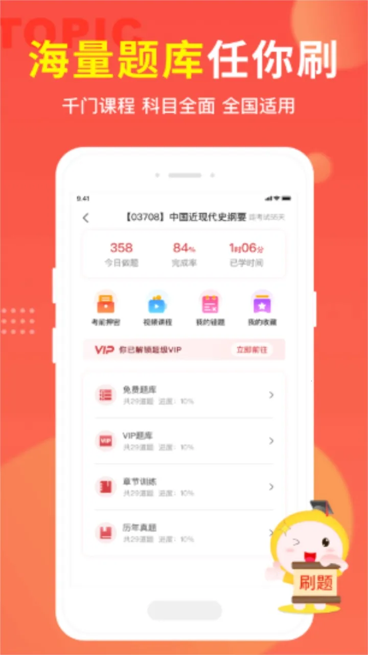 1. 提供练习打卡功能,能每日刷题打卡,有效提升学习水平。