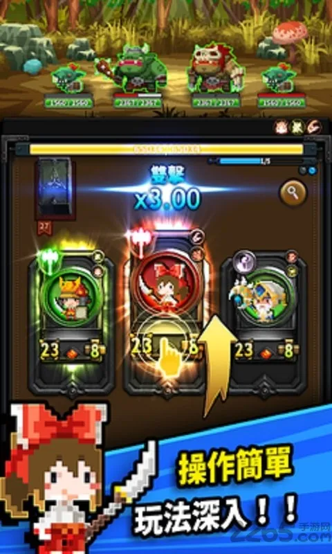 2. 策略玩法丰富,三连卡机制结合多种牌型触发高阶技能,战斗规则易懂但策略深度足,每回合需快速判断手牌组合。