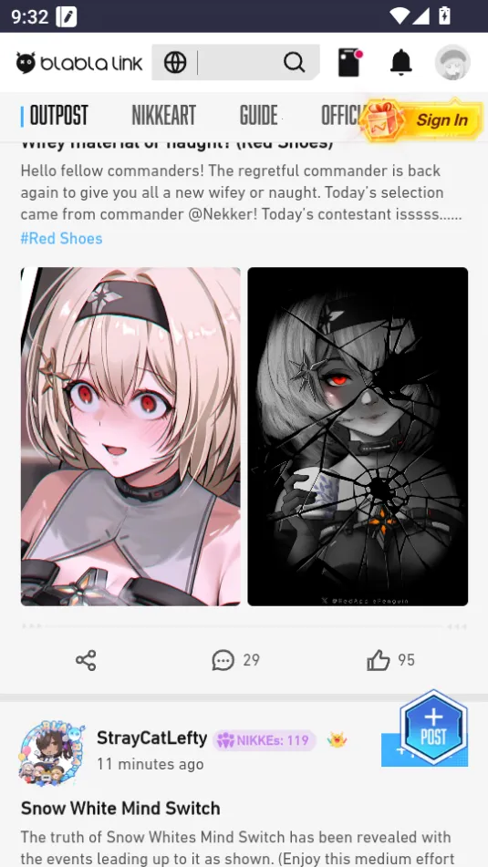 4、支持玩家投稿同人作品,优质内容获官方推荐奖励,还能关注其他玩家,点赞评论分享动态,形成活跃互动社区。