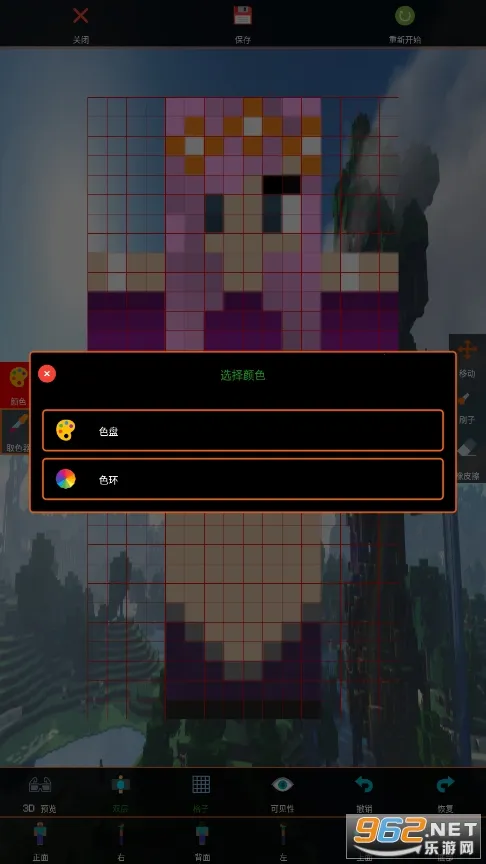 1、操作简单,用户能根据需求设置提升游戏体验,比如自由绘制和修改皮肤,包括调色板图层管理等功能,还有各种强大工具如刷子、色轮色盘、橡皮擦等,且提供6个方向视图和3D动态预览功能。