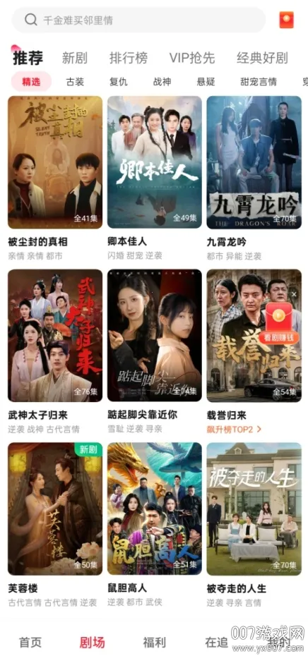 1. 海量资源覆盖广,涵盖爱情、悬疑、喜剧、都市等多种题材,还有都市爽剧、修仙玄幻、浪漫言情等,满足多样观看需求。