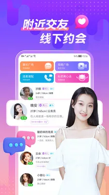 4. 自动匹配合适用户,操作轻松。能轻松添加社交好友,通过视频、语音、文字轻松沟通,随时体验舒适社交活动,观看有趣直播。