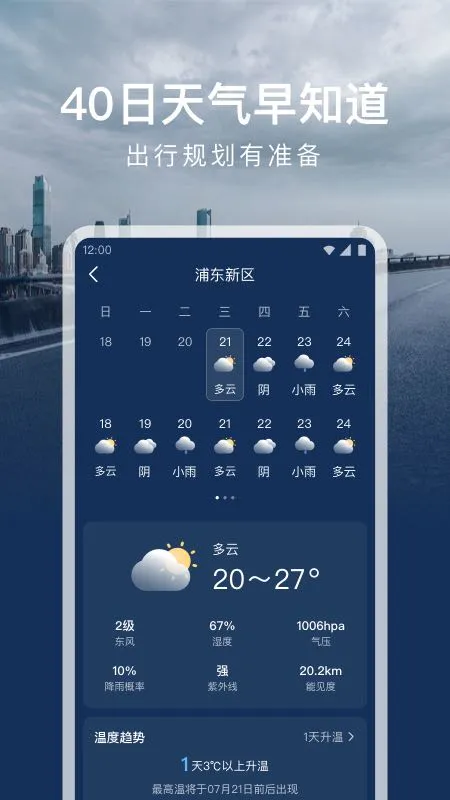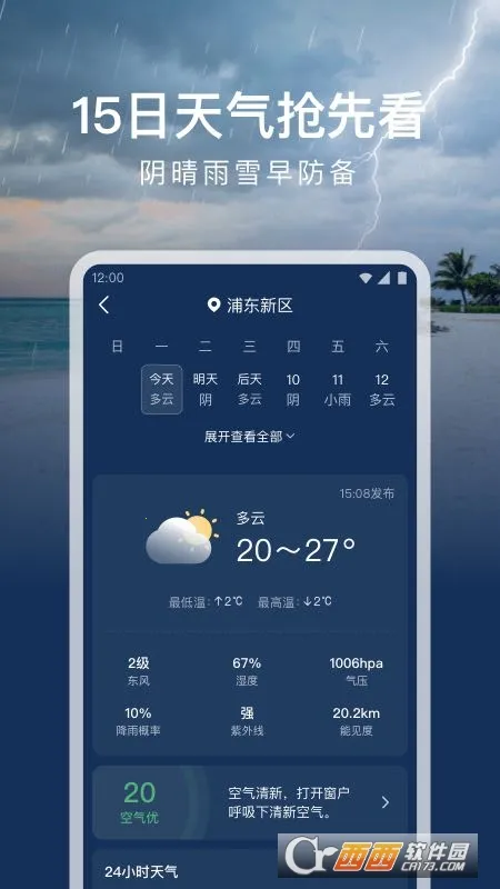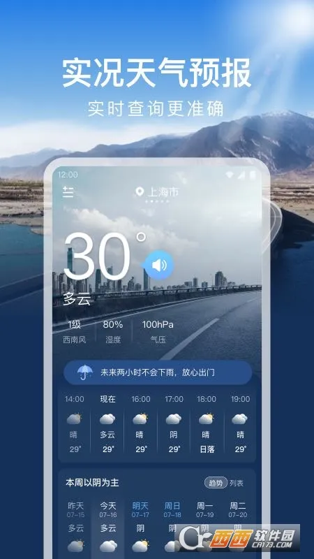 时运天气预报软件超实用!它能提供超准确的天气状况,能查看未来15天甚至40天的天气变化,帮你轻松制定出差或旅行计划。逐小时展示未来24小时天气,包括现象、温度、空气质量、风况等信息。有动态天气背景,下雨打雷闪电动画超逼真。空气质量全方位覆盖,显示15日趋势,PM2.5、PM10等污染物清晰展示。还有真人语音播报,亲切女声解放双目。能提前预警高温、寒潮、暴雨、台风等恶劣天气。软件界面简约,该有的功能都齐全,室内外温度都能查。数据源权威,能满足你日常各种天气查询需求,让你随时掌握天气动态,提前做好准备,为生活保驾护航,赶紧来试试吧!