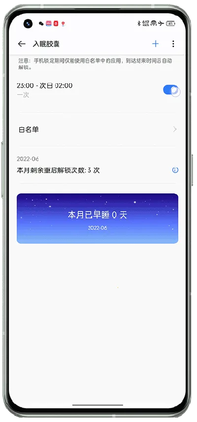 3. 智能提醒与干预:能根据睡眠数据和作息习惯,智能提醒合理安排作息时间,还可定时锁定手机屏幕,隔绝夜间干扰,养成良好作息。