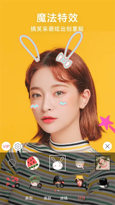 1. 该软件能对照片人物自由美颜、磨皮,添加各种滤镜,还能为角色添加魔法特效,让照片更精美生动。