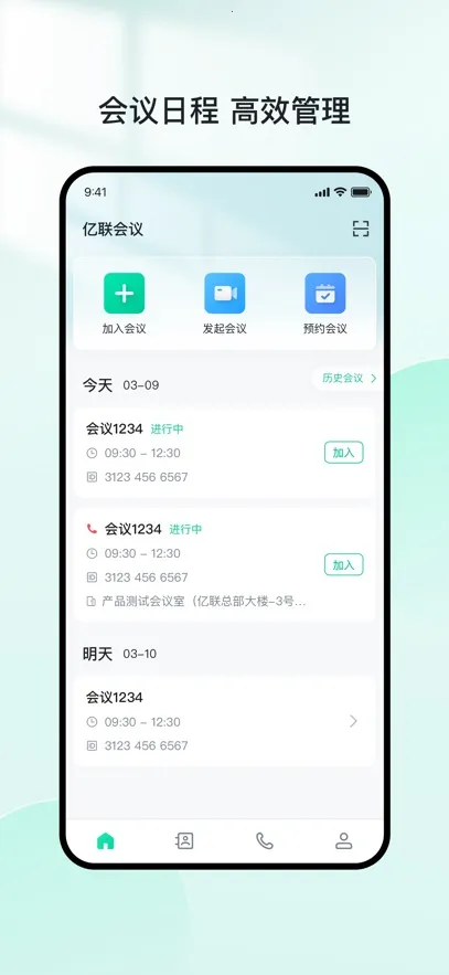 1. 移动开会不受限,拿起亿联会议,随时随地都能开启会议。