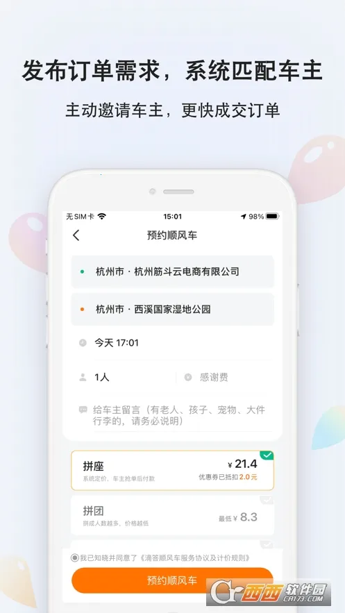 1. 订单匹配操作简单,乘客输入目的地后,能快速与司机匹配,方便快捷。