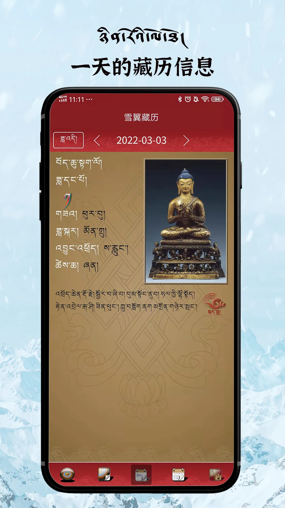 3. 功能体验:软件功能无阉割,与官方原版一致。它以全藏文界面呈现,有详尽的藏历年月日信息查询服务,还有拉萨语真人语音播报功能,为日常生活和文化学习增添便利与沉浸感。