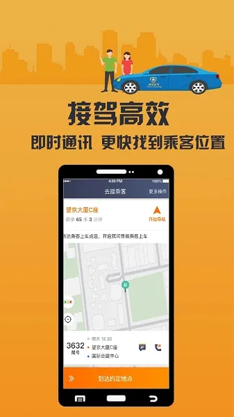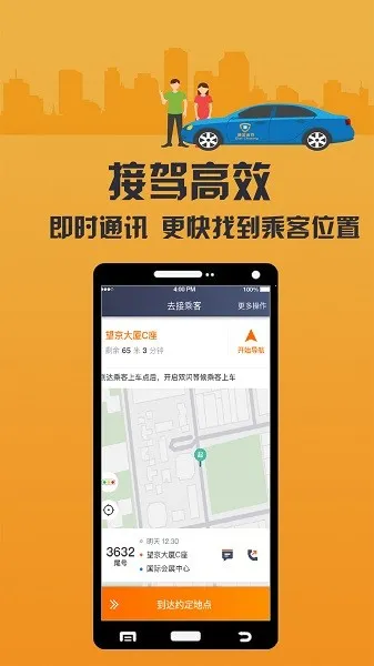 3. 接驾高效,即时通讯可更快找到乘客位置,还能接收预订单。