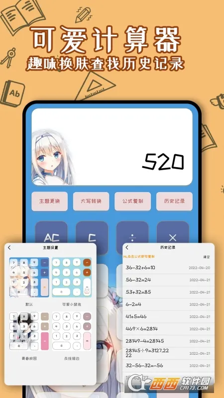 3. 有多种可爱皮肤可供选择,让计算变得更有趣,还能自由更换不同主题皮肤,增添计算过程的乐趣。