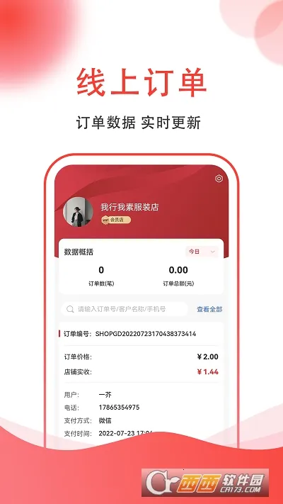 2、能实时查看线上订单,轻松接单处理,订单分类清晰明了,掌握最新订单数据。