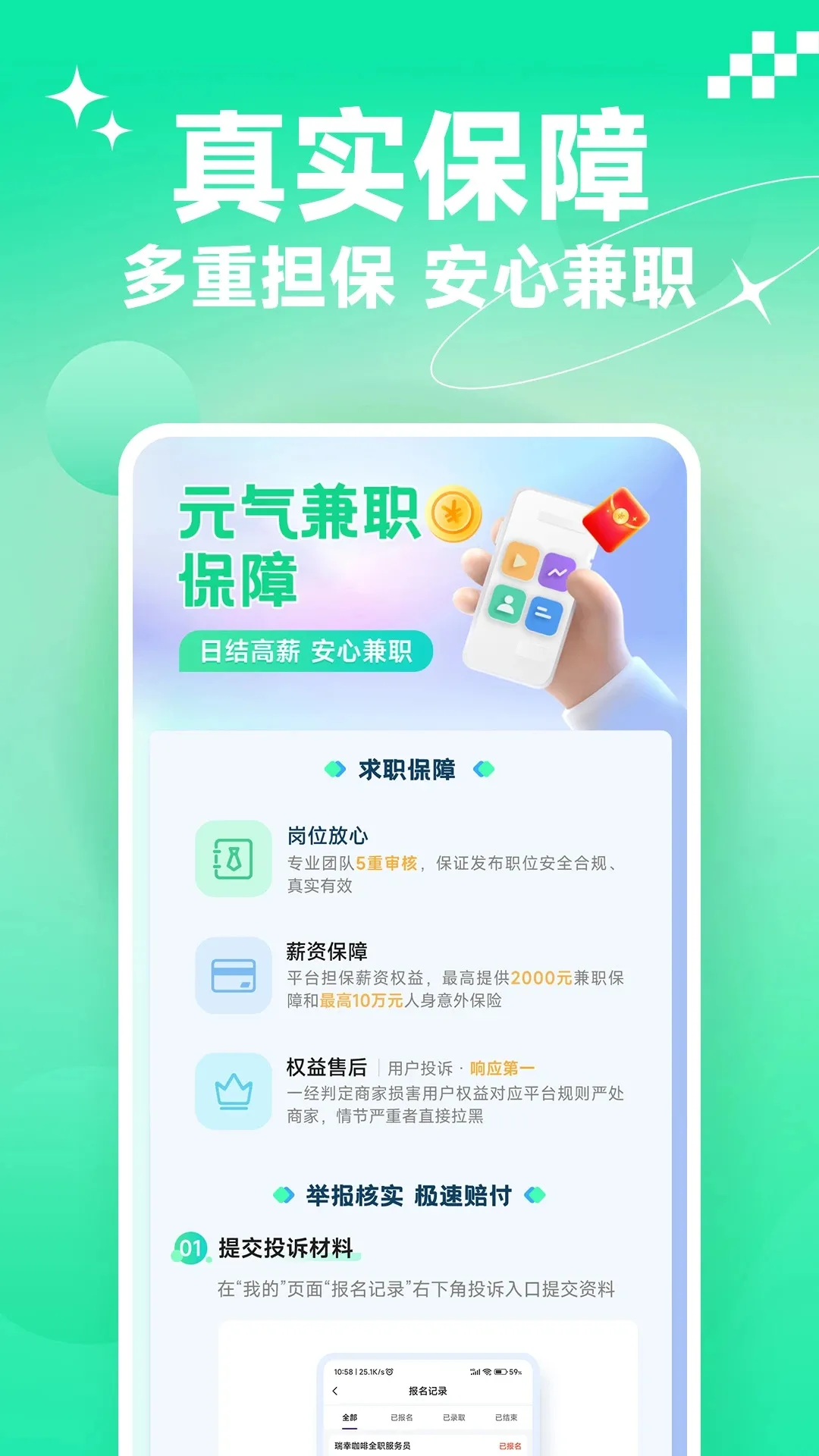 3、信息真实可靠,所有岗位信息5重审核,招聘企业均上传营业执照且缴纳保证金,保障求职者权益。