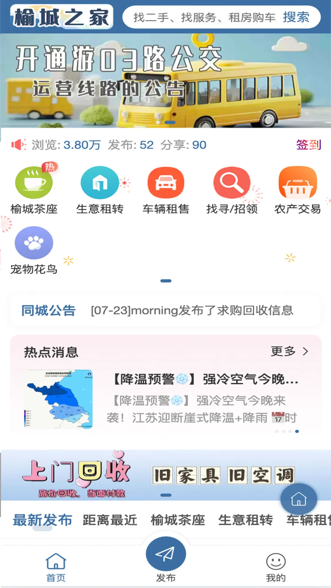 2、社交功能强大,提供小圈交友、论坛等,连接大赣榆百万人脉圈。用户可加入兴趣小圈分享生活,还能发布寻人启事等,轻松扩展本地生活圈。