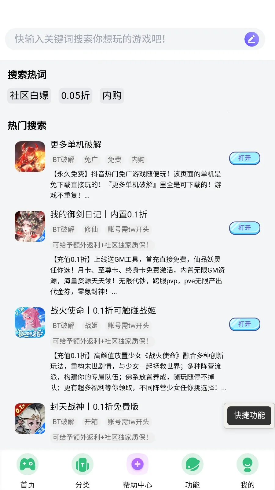 1. 海量免费游戏资源库汇聚超万款联网手游与单机游戏,涵盖动作策略解谜等20品类,所有游戏均可免费试玩。每日更新50款新品,同步国内外热门大作,打造一站式游戏体验平台。
