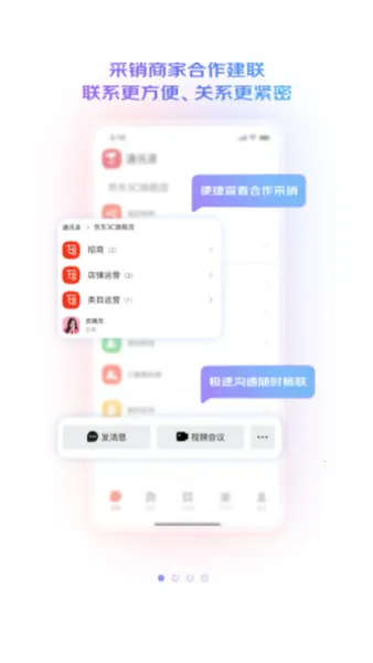 京东 WE 是面向政企的智能协同平台,集即时通讯、音视频会议、任务管理等多样功能于一体。提供多重安全保障,能高效合规沟通,精准映射组织结构,带来高清流畅体验,助力政企降本增效、全流程赋能。