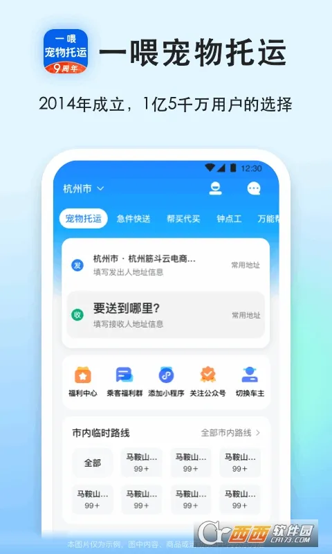 一喂宠物托运由杭州一喂智能科技打造,2014年成立,超8300万用户。提供专人专车专送,可长途短途同城闪送,涵盖宠物及多种物品配送,优化多项流程,24小时服务,实时查看状态 。