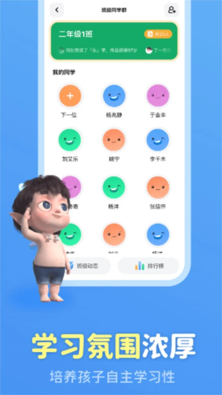 3、趣味学习模式,推出趣味挑战功能,可对班级同学学习动态发起挑战,以游戏化方式激发孩子主动学习;还有趣味手写,加强交互体验。