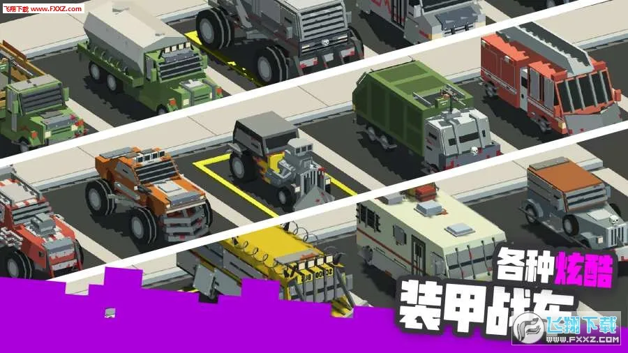2、玩法丰富且刺激,玩家驾驶战车在充满僵尸的城市穿梭,用连枷等武器摧毁僵尸和建筑,还能解锁多种车辆和连枷,体验不同战斗方式。