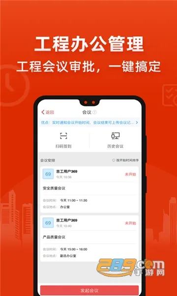2、移动办公便捷:支持手机定位签到,实时知晓项目成员到位情况;工作事务随时随地审批,省心又高效;多模板工作日志,反馈项目情况一手掌握;还原天气记录场景,记录影响施工进度的天气因素。