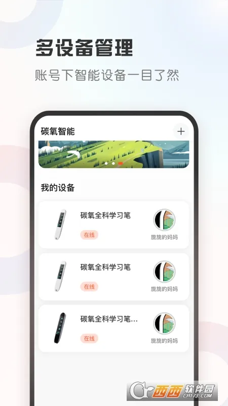 1、支持多设备管理,家长能通过该平台绑定管理碳氧全科学习笔等智能硬件,多台设备可接入同一个App,方便又高效。