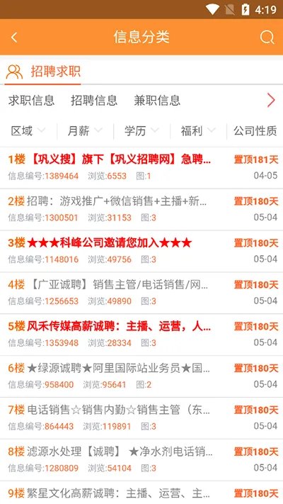 1、信息覆盖领域广,涵盖招聘求职、房屋信息、二手市场、家政服务等多个方面,能满足不同人的多样需求。