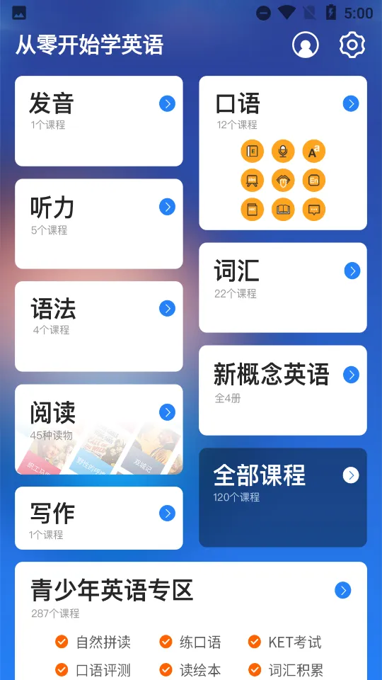 从零开始学英语 app 由权威机构和名师打造,专为零基础或基础差的用户设计。课程从音标起步,涵盖 15 大主题场景。采用过关式教学,有智能评测、丰富素材,支持碎片化学习,助用户全面提升英语能力 。
