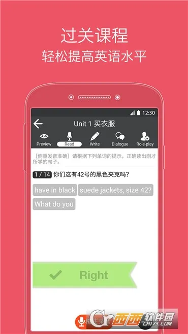 1、内容编排系统,课程从字母、单词等基础学起,由易到难,循序渐进带动口语、语法等多方面能力提升,能让学习者全面发展。
