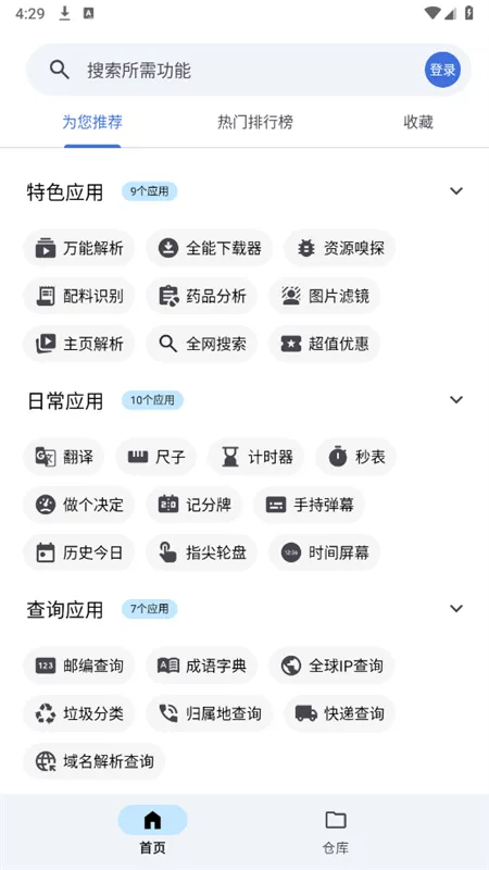 3、查找便捷,分类清晰,支持按类型、热度搜索,用户无需长时间翻找,就能精准定位到所需应用信息。