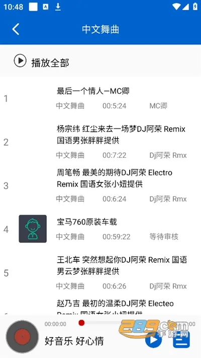 1、音乐资源海量且丰富,涵盖中文、英文、日韩等多种语言的DJ舞曲,还有车载电音、网红喊麦等多种类型,数量多、种类全。