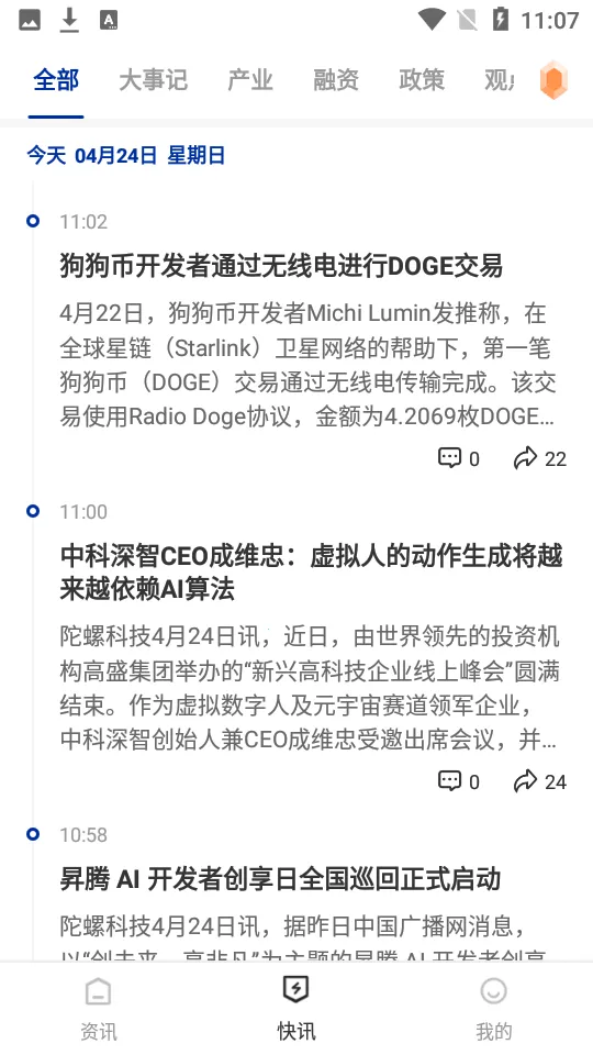 2. 行业快讯:及时更新,带来区块链行业一手资讯,重大突发新闻推送迅速。