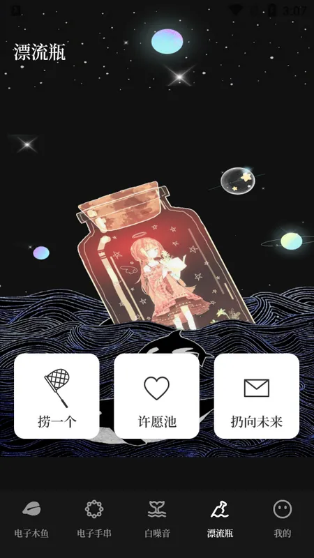 4. 集合电子木鱼、电子手串、白噪音及漂流瓶等多样化放松功能,满足不同减压需求。
