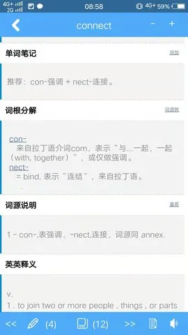 如果你想在线查询词根词缀记忆字典,那这款软件绝对值得拥有!它是一款超棒的单词学习专用软件,收录的单词达到专八、考研级别,完全不用担心词汇量问题,而且所有功能学习资料都能免费使用。它总结了千余条词根和近万条包含词根的单词,还有正向和反向索引,方便举一反三查询。软件标记了大学英语四六极专四专八考研大纲词汇,以及托福雅思GRE常考词汇。功能也很丰富,有真人单词读音,记忆模式只提供单词,再次点击显示具体含义,方便记忆。还有独创的单词逆序检索和查看前后词条功能。它的亮点也不少,单词查询和阅读页面都能调节亮度,夜间使用不伤眼,还集成多本文学巨著帮你熟悉语言环境。更新日志显示不断优化,比如新增词源分析等。有了它,查询词根词缀记忆超方便,学单词更轻松!