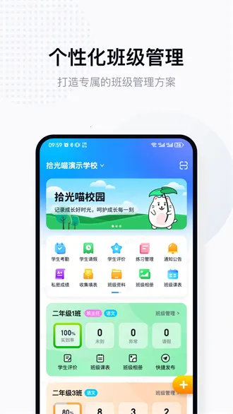 1. 提供个性化管理方案,依班级特点等创建专属界面,直观展示班级学习进度等信息。