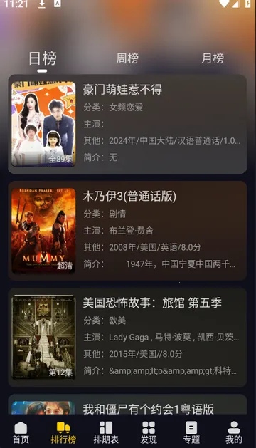 2. 排行榜实时更新热门内容,未完结电视剧按播放速度按时更新,浏览记录方便续看。
