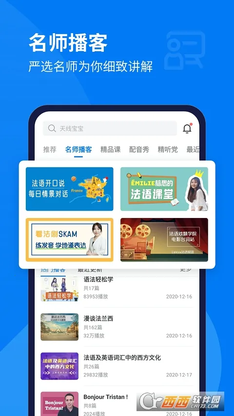 每日法语听力app专为法语学习者打造,界面简约。有海量听力材料、多样教学方式,能制定个性化计划。具备划词搜索、跟读打分等功能,支持离线下载,资源丰富且每日更新,助你提升法语听力与口语水平。