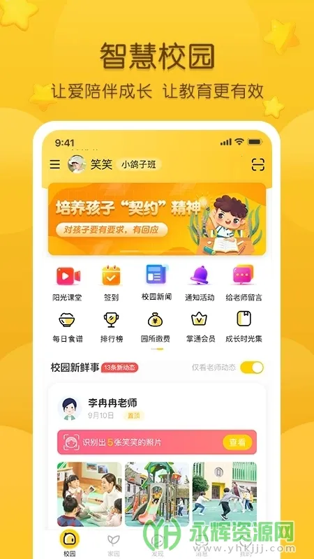 2. 社区让千万家长和教育工作者亲密接触,家长通过手机或移动终端能及时收到幼儿园的最新通知和公告,以及孩子班级的学习生活图文动态。