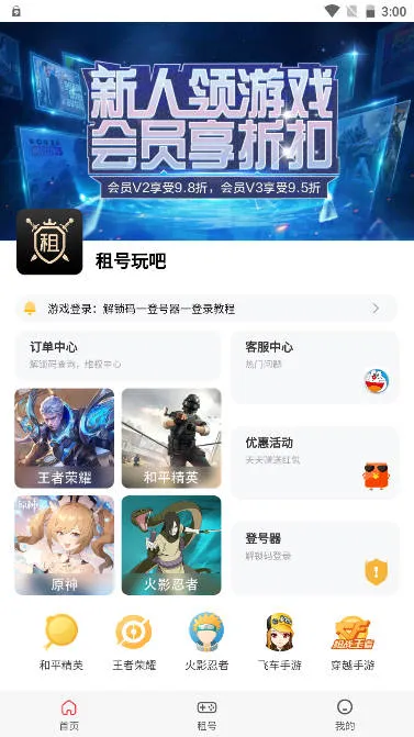 2、价格实惠,仅需1元就能租到V9级别账号,还能享受多种租号优惠,帮玩家节省费用。