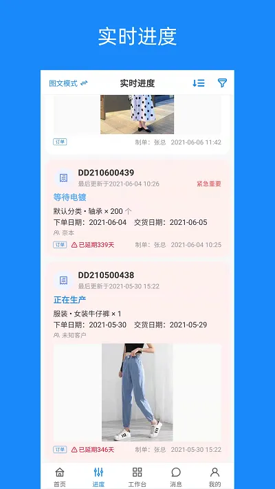 2、支持自由定制工艺流程,可让全公司员工参与跟单协作,还能邀请客户加入,客户能实时了解产品进度。