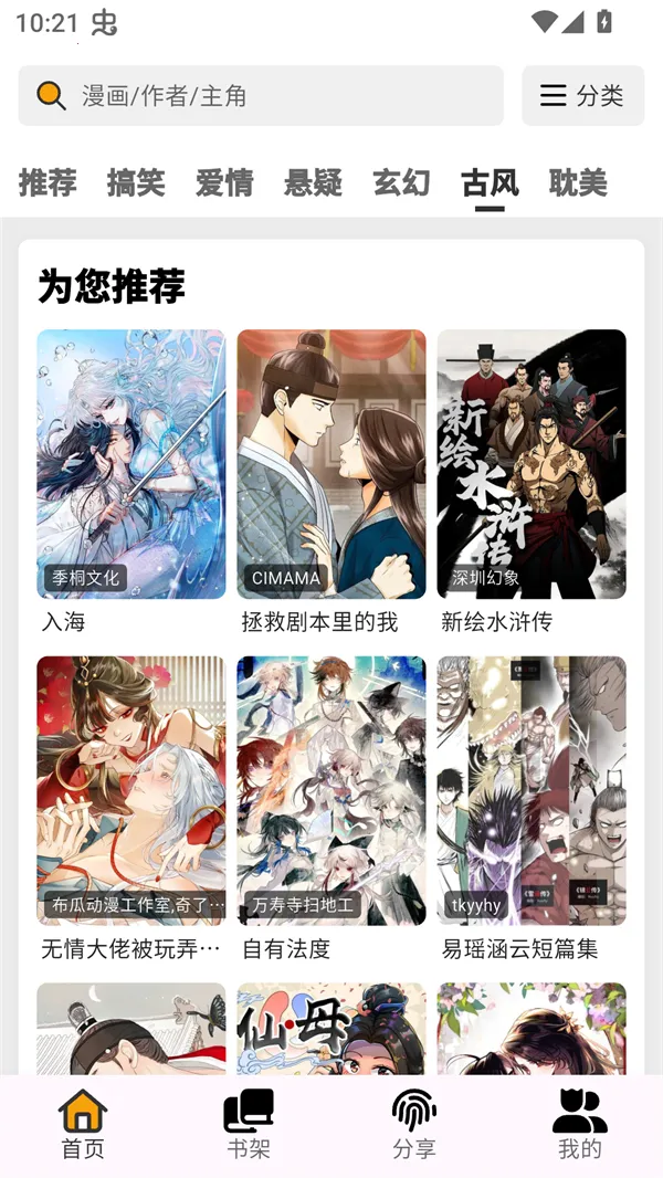 1、海量正版漫画资源免费提供,涵盖搞笑、爱情、悬疑、玄幻、古风、耽美等多种热门题材,满足不同用户阅读喜好。