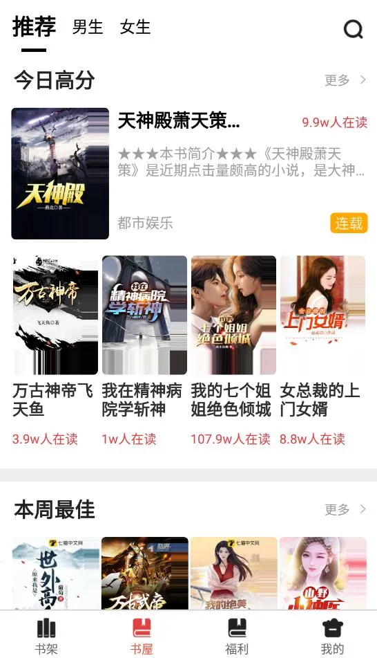 3. 精选各类好书,有男生女生完结榜单,还有大神推荐,好书源源不断。