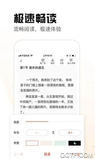 4. 能依据喜好设置阅读背景,变换字体大小。