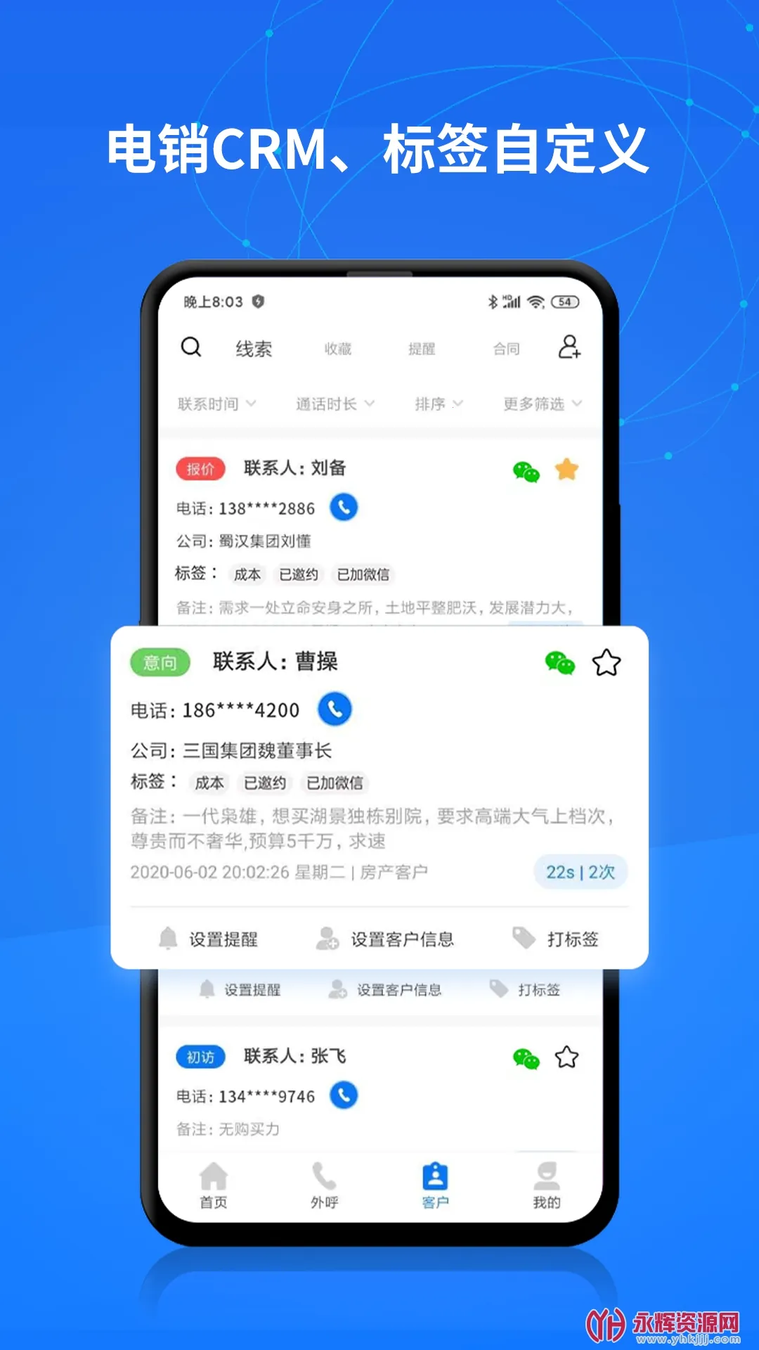 3. 客户管理:能自定义分类管理客户名单,还可备注客户信息,方便再次访问。