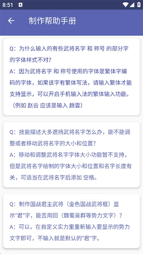 3. 能输入武将称号、名字、技能等添加文字描述,一键快速制作并保存独一无二的三国杀卡牌人物角色,还支持应用到游戏中。