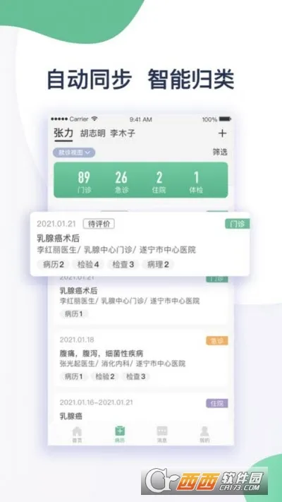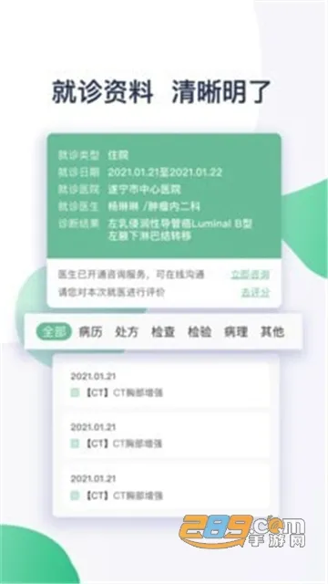 2、能自动同步就诊资料,智能归类病历处方和检查检验报告,方便回顾查阅,病例管理省心。