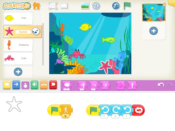 2、专为5岁以上儿童打造,能创作互动故事和游戏,借助图形化编程积木让角色完成多样动作。