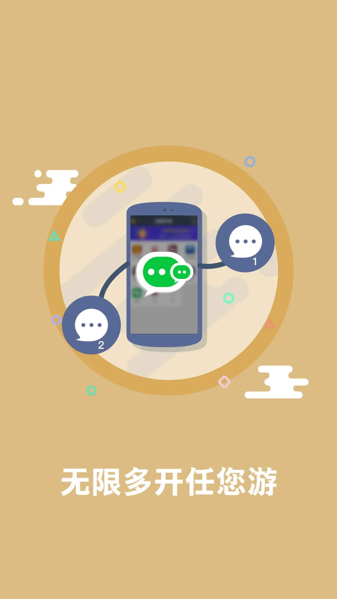3、一部手机轻松实现社交聊天购物工具视频音乐直播游戏等几乎所有应用的多账户同时在线,生活工作互不干扰,娱乐游戏双倍惊喜,让你的手机充满无限可能。