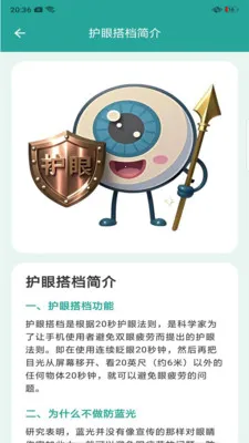 2、精准贴合用眼习惯,每20分钟自动触发护眼提醒,引导远眺放松眼部肌肉。