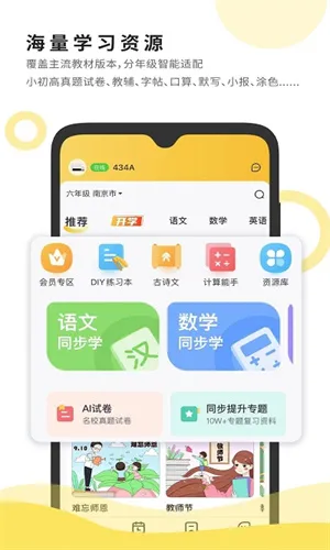 2、资源丰富,新增300万学习资源及常用模板,有口算字帖、拍试卷等学习小工具,能满足各阶段学生学习需求。