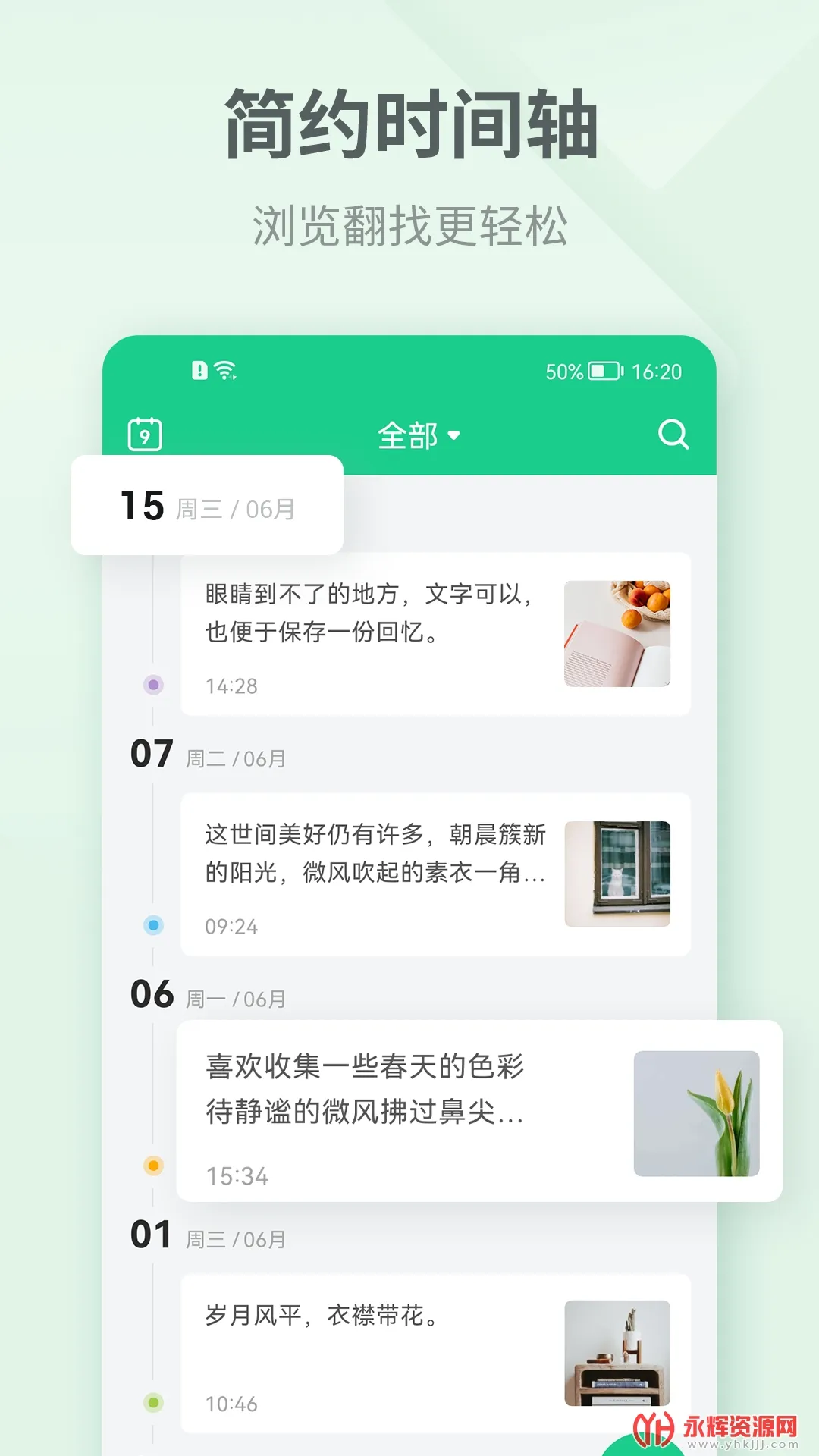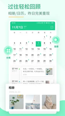 4、功能实用多样,有简洁美观时间轴、精准日历,还能灵活分类日记,且支持导出分享 。