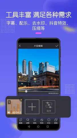 2、提供丰富多样的视频编辑功能,如剪辑拼接、添加字幕贴纸滤镜特效、去水印等,让视频更生动。